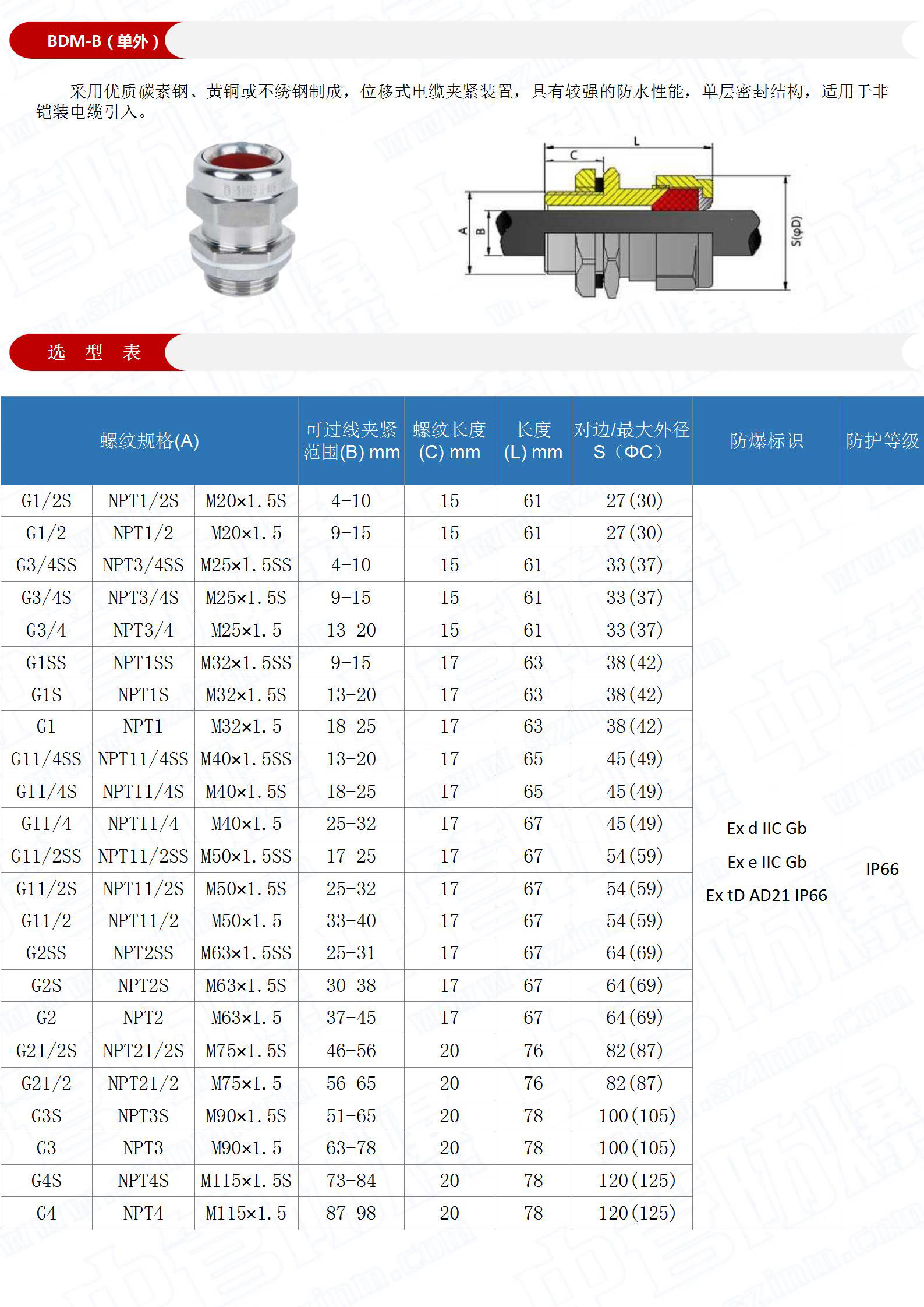 BDM-B(单位)内容:防爆格兰头又名电缆夹紧密封接头